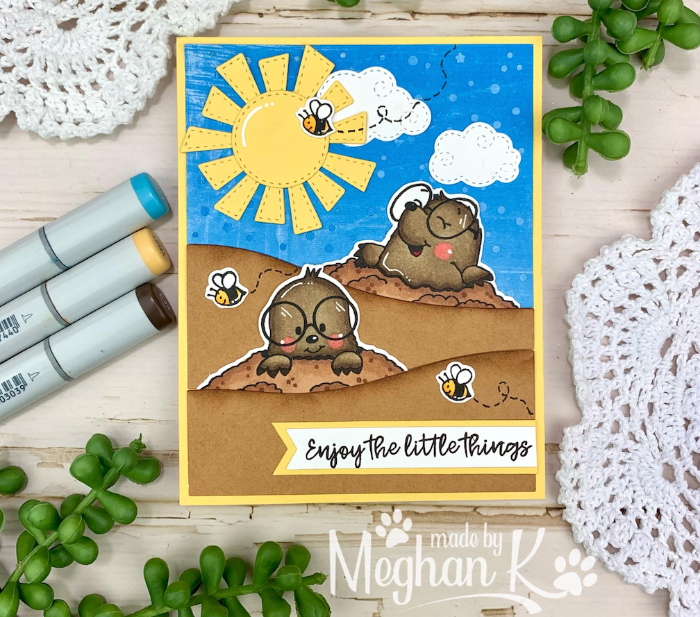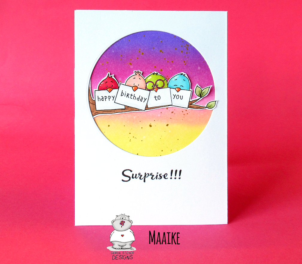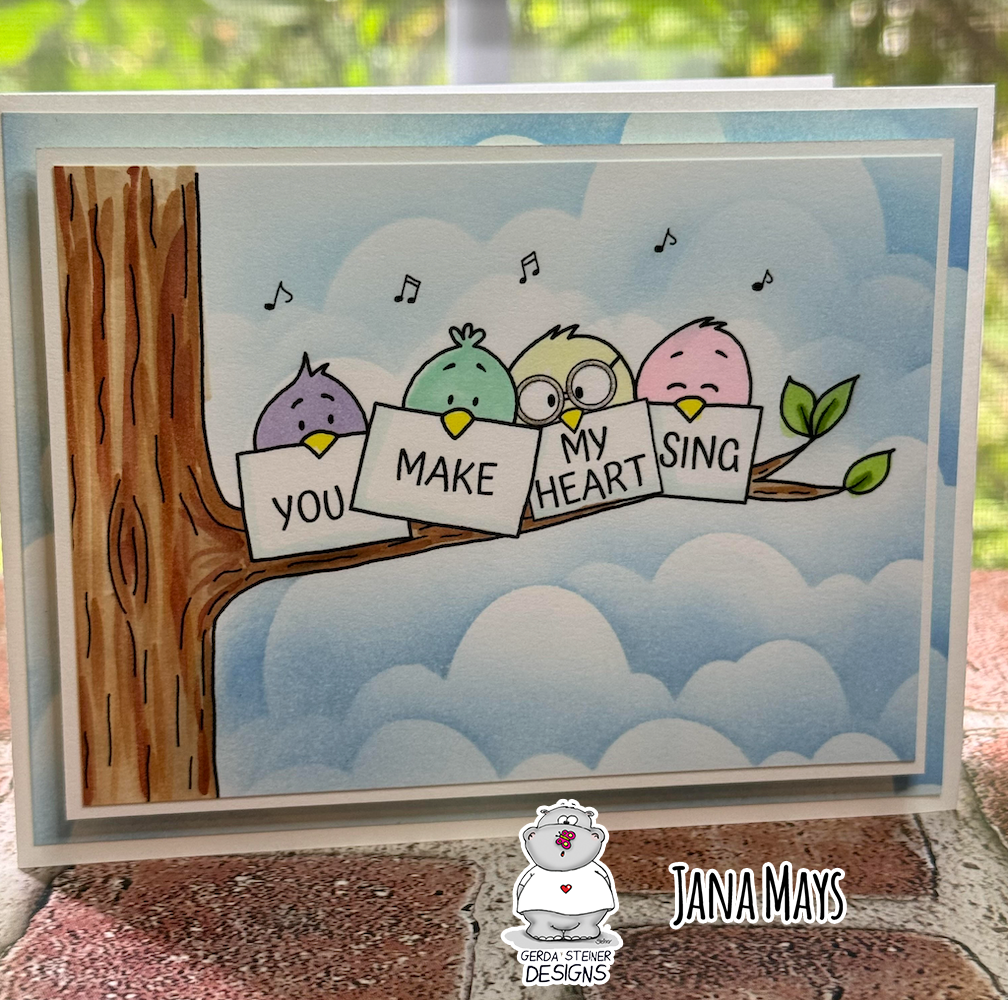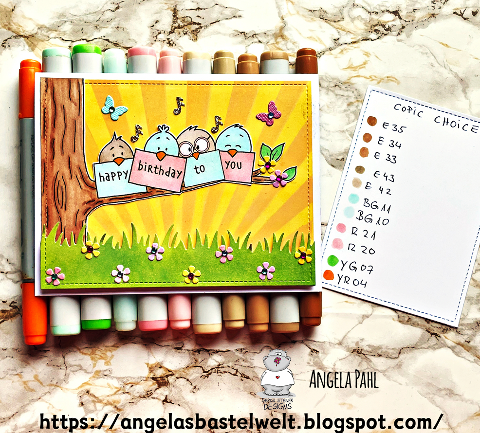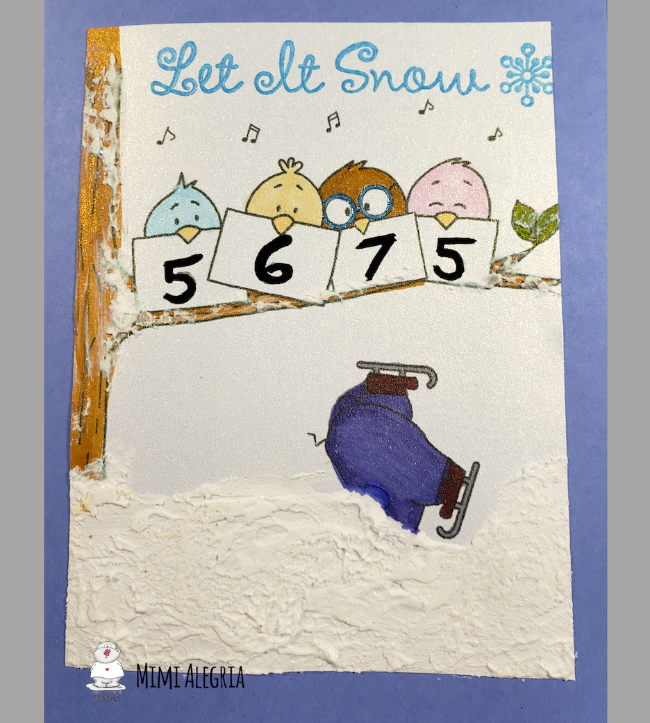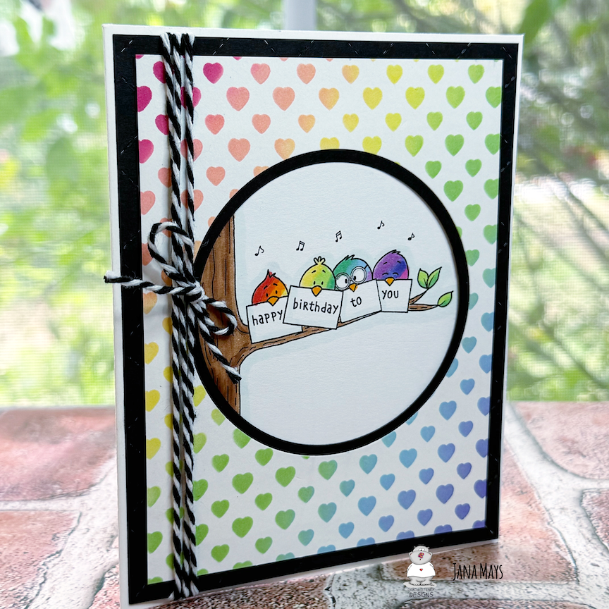I keep seeing the fun pastel colors for the birds and couldn't resist using them as well. I took some glitter paper and used a starburst punch to make a sun rising on my adorable morning birds. I coated the hearts with glue and covered them in glitter for a final touch.