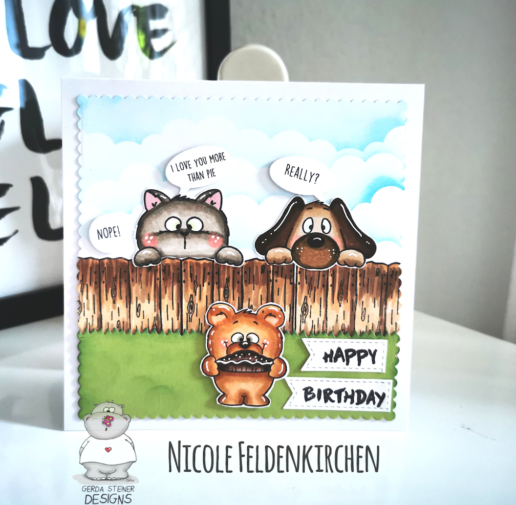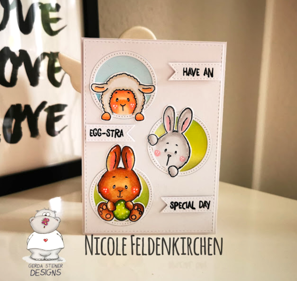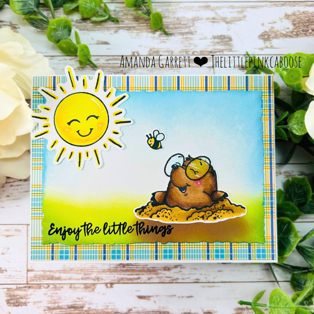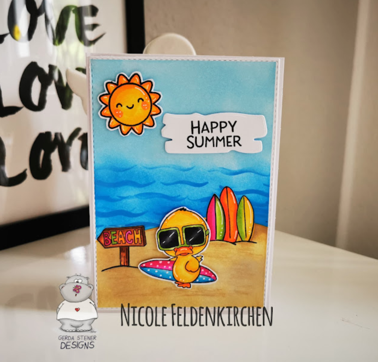 I keep seeing the fun pastel colors for the birds and couldn't resist using them as well. I took some glitter paper and used a starburst punch to make a sun rising on my adorable morning birds. I coated the hearts with glue and covered them in glitter for a final touch.
