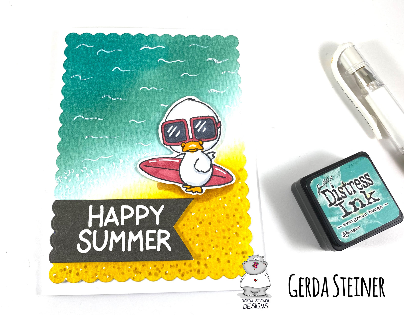 The quality of Gerda Steiner Designs (GSD) stamps and dies are good. I usually use Versa Fine Clair ink and the stamp on the card come out very clear and crisp. I just made a card for my sister in law's birthday using GSD Go Wild stamp and die and I use Altenew mushroom stencils as the background. I have fun making this card.