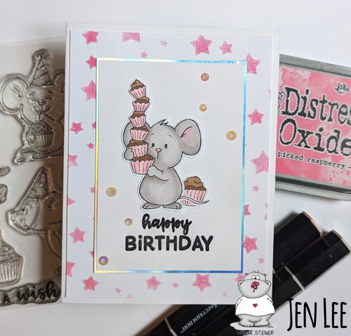 The quality of Gerda Steiner Designs (GSD) stamps and dies are good. I usually use Versa Fine Clair ink and the stamp on the card come out very clear and crisp. I just made a card for my sister in law's birthday using GSD Go Wild stamp and die and I use Altenew mushroom stencils as the background. I have fun making this card.